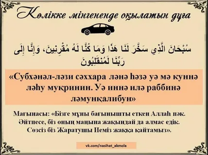 Жолға шыққанда оқылатын дұға .