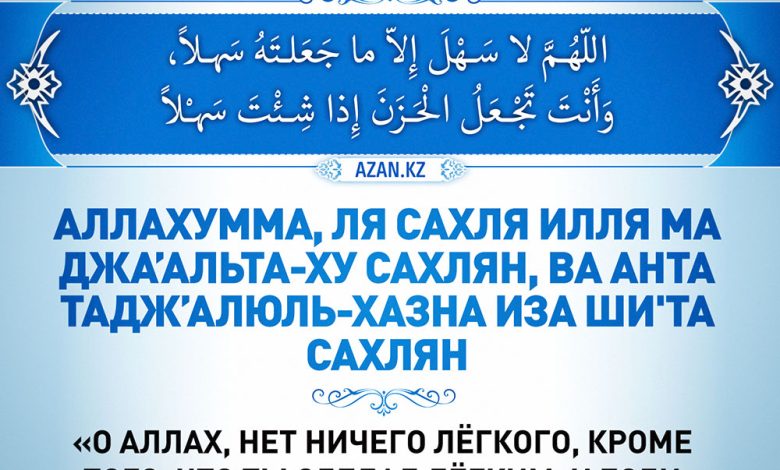 «Уа, Аллам! Сен жеңіл еткеннен басқа еш нәрсе жеңіл емес. Егер қаласаң, қиын нәрсені де жеңілдетесің». (хадис – Ибн Хиббан)